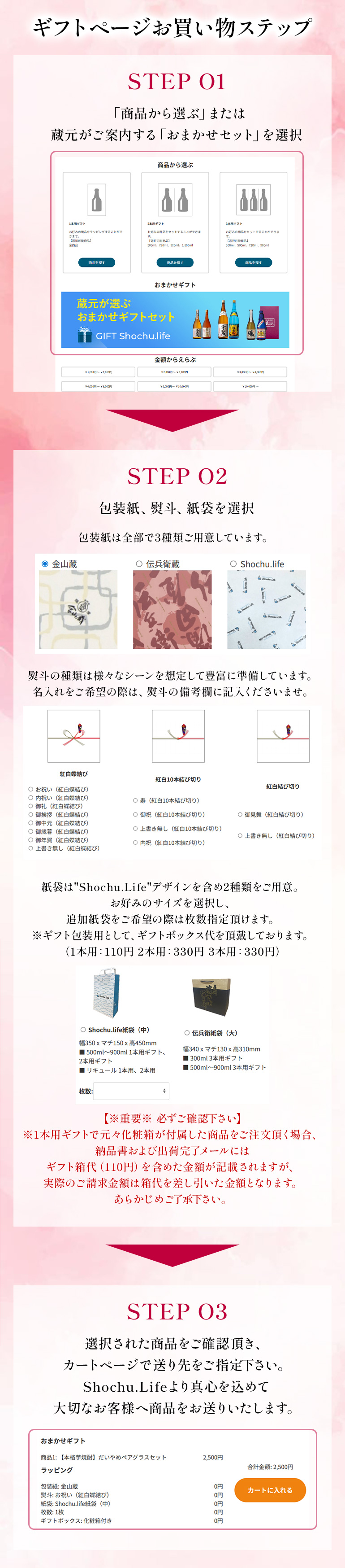 ギフトページでは、3種類の包装紙や、